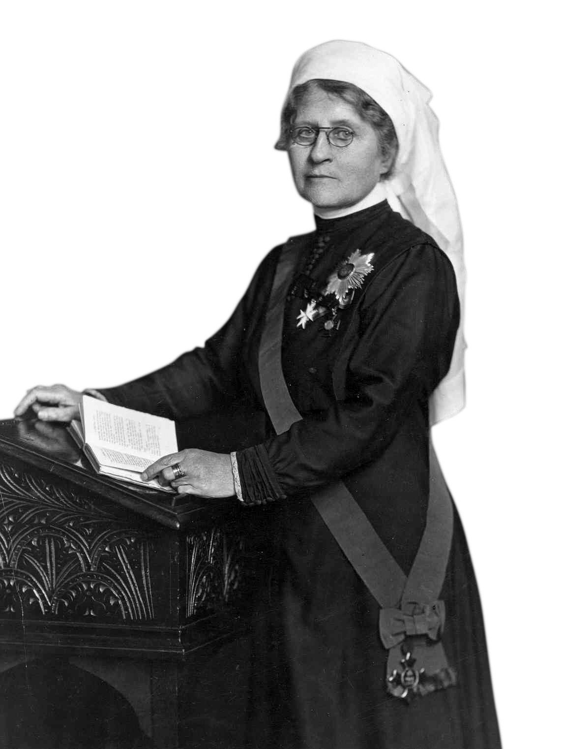 Standing at just 4’11” Sarah Swift had immense force of personality and a sharp sense of humour. She was known as ‘the mighty atom’ for her energy and enterprise. As well as the College’s founder and first member, Swift was Matron-in-Chief of the Nursing Division of the Joint War Committee. She became a Dame in 1919 for her wartime work.